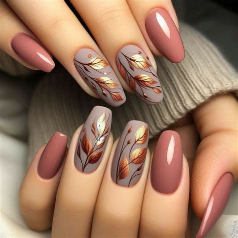 Step into a realm of enchantment with nail designs adorned with intricate foliage. Paint delicate maple leaves in hues of burgundy and burnt orange, or create a mystical forest scene with shimmering gold vines and deep emerald greenery. Add a touch of autumn magic with tiny acorns or shimmering toadstools.