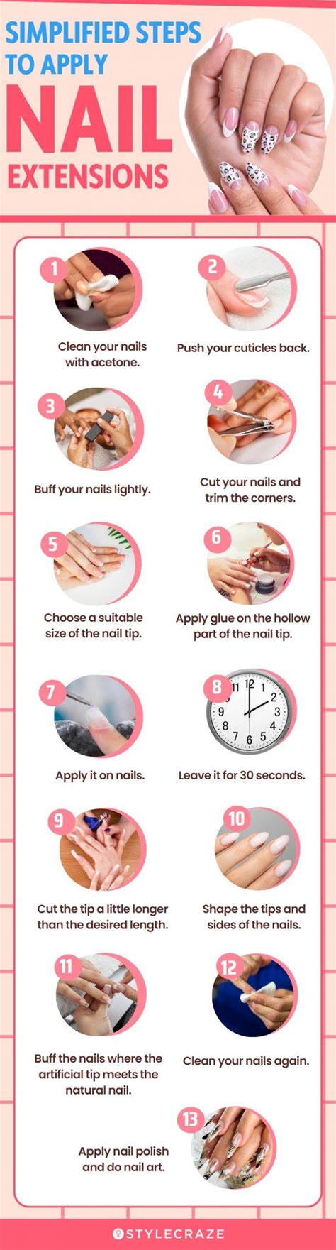 Once you have your products, you’re ready to start applying your nail extensions. Here are the steps: