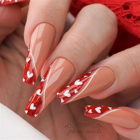 Add a touch of elegance to your Valentine’s Day nails with delicate lace details. Apply a sheer pink base and carefully apply lace overlays to create a romantic and intricate design. Finish with a layer of clear topcoat to seal in the lace and give it a glossy shine.