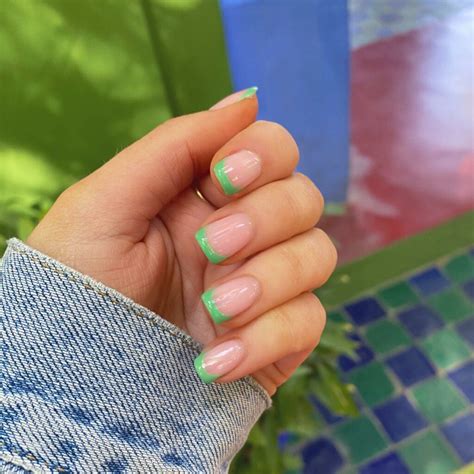 Let your creativity soar as you experiment with different patterns and variations of the classic French tip. Add a touch of whimsy by alternating green and white tips on each finger. Or, try a half-moon design, blending nail french green with a deeper shade of green at the base of the nail. The possibilities are endless!