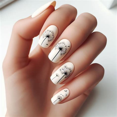 Another popular dandelion nail art design is the scattered seed look. Tiny black or brown dots are strategically placed on the nails to resemble the windblown seeds of a dandelion. This simple yet effective design adds a touch of whimsy and movement to your manicure, making it perfect for spring.