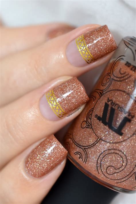 Incorporate metallic accents into your t nail art for a touch of glamour. Use thin-tipped brushes to create fine lines or negative space patterns in metallic shades, such as gold, silver, or rose gold.