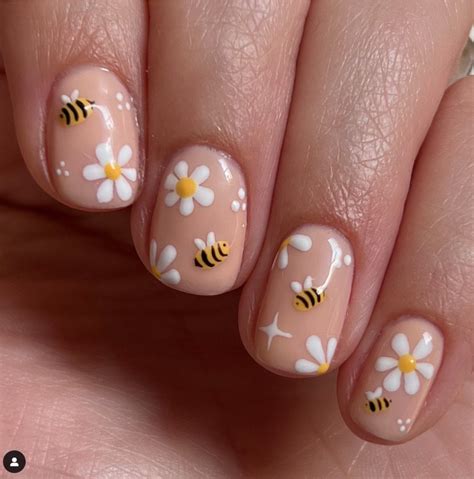 For a touch of artistry, hand-paint dainty daisies on your nails. Use a fine-tipped brush and white polish to create the petals, adding a small yellow dot for the center. Experiment with different sizes and arrangements to create a unique and personal design.