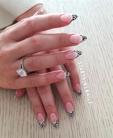 Zebra nail art french offers limitless possibilities for personalization. Mix and match different colors to create vibrant or subtle effects, or experiment with different stripe widths and patterns to unleash your inner artist. The options are as boundless as your imagination, allowing you to create unique and eye-catching nail designs that express your style and personality.